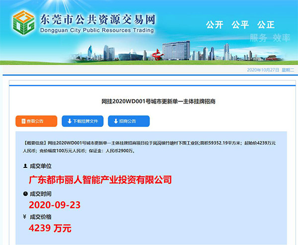 ¡¡¡¡10ÔÂ22ÈÕ£¬¶«Ý¸Êй«¹²×ÊÔ´ÉúÒâÖÐÐÄÐû²¼¡°·ï¸ÚÕòÖñÌÁ´åÏÂΧ¹¤ÒµÇøÐÂÐ͹¤ÒµÀà¸üе¥Î»¡±³É½»Í¨¸æ£¬ÕâÒâζ×ÅAG¹«Ë¾ÎªÆäÌṩÆÀ¹À·þÎñµÄ¡°¶«Ý¸ÊÐÊ××Ú¼òµ¥Ö÷Ìå¹ÒÅÆÕÐÉÌ¡±ÏîÄ¿£¨Íø¹Ò2020WD001ºÅ£©Õýʽ³É½»¡£
